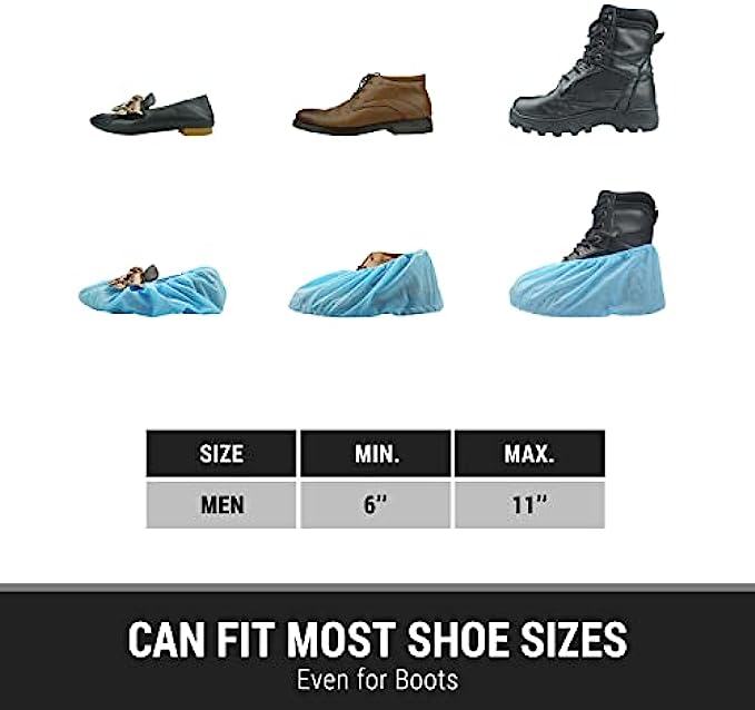 • ✅ LARGE SIZE FITS MOST: Whether shoes or boots, our shoe covers are designed to fit all sizes up to a US male size 11.