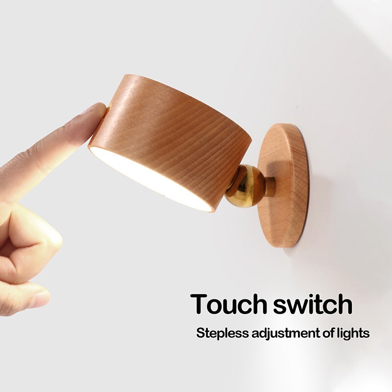 【IN Stock Store】360 Rotate Stepless Dimming Woode Magnetic Light Dimmable Wall Lamp Reading Light Home Bedroom Lighting Supplies High-quality