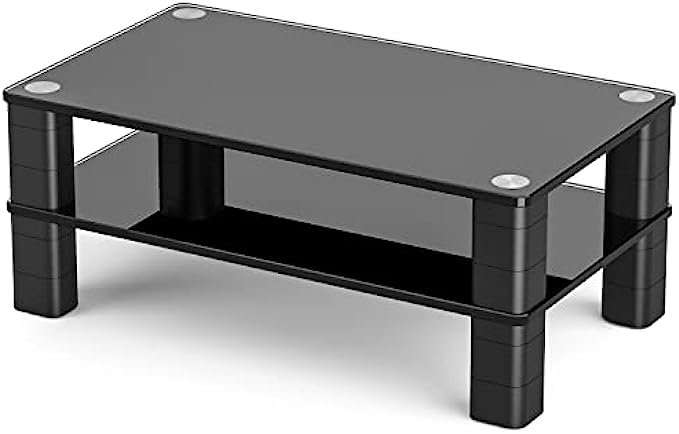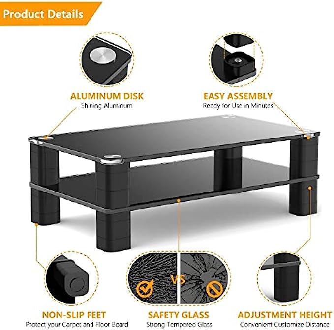 • ☝STURDY AND STABLE STAND - The monitor stand riser is made of black tempered glass platform and sturdy plastic legs, it can easily hold up to 33 lbs laptop, monitor, printer, pc or all flat screen display. The legs are each made from three stackable sections that join together tightly and then into the top.