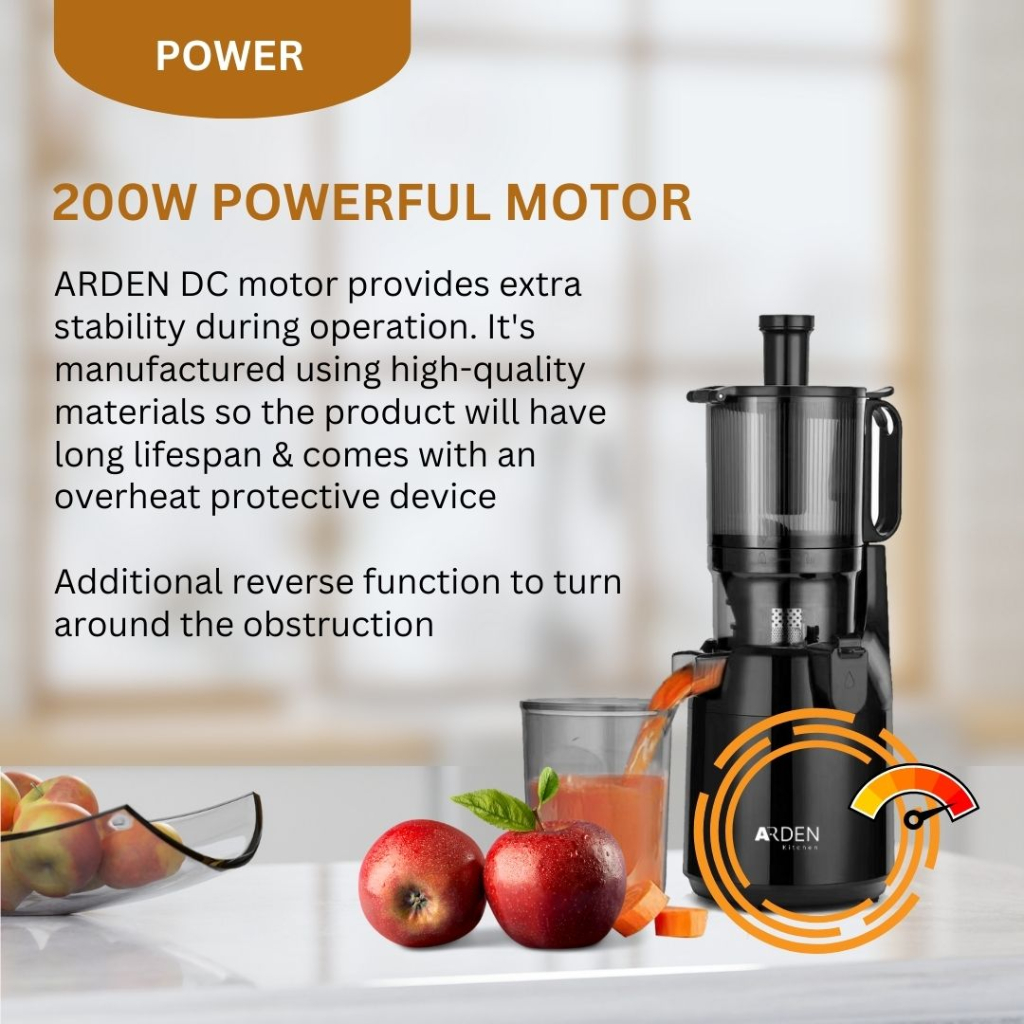 Arden Extra Large Cold Press Slow Juicer, Easy to Clean, Pulp Measuring Cup, Less Oxidation