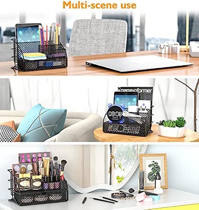 • 【Versatile Organizer】: Desktop organizer is suitable for organizing sundries, bathroom supplies, books, and other daily necessities. Place the organizer in any place such as office, desk, school, living room, etc. Clean up your living space and say goodbye to the mess.