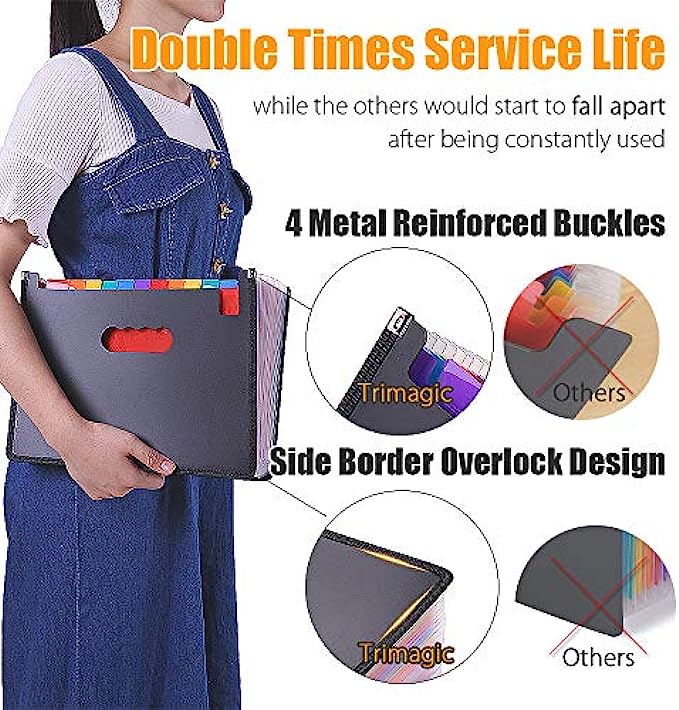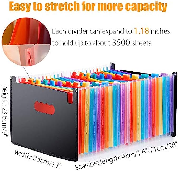 • Large 24 Pockets File Folders: TriMigic file box will give you plenty of room to grow and add more things as needed, because this accordian file organizer has 24 individual pockets that fit A4 & letter size, and each pocket can expand across the bottom and top, the accordion file organizer can hold up to about 3500 sheets