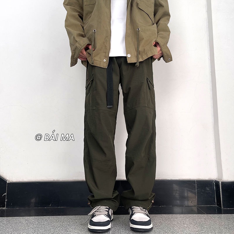 Functional Jacket Men Overalls Vintage Straight Casual Trousers