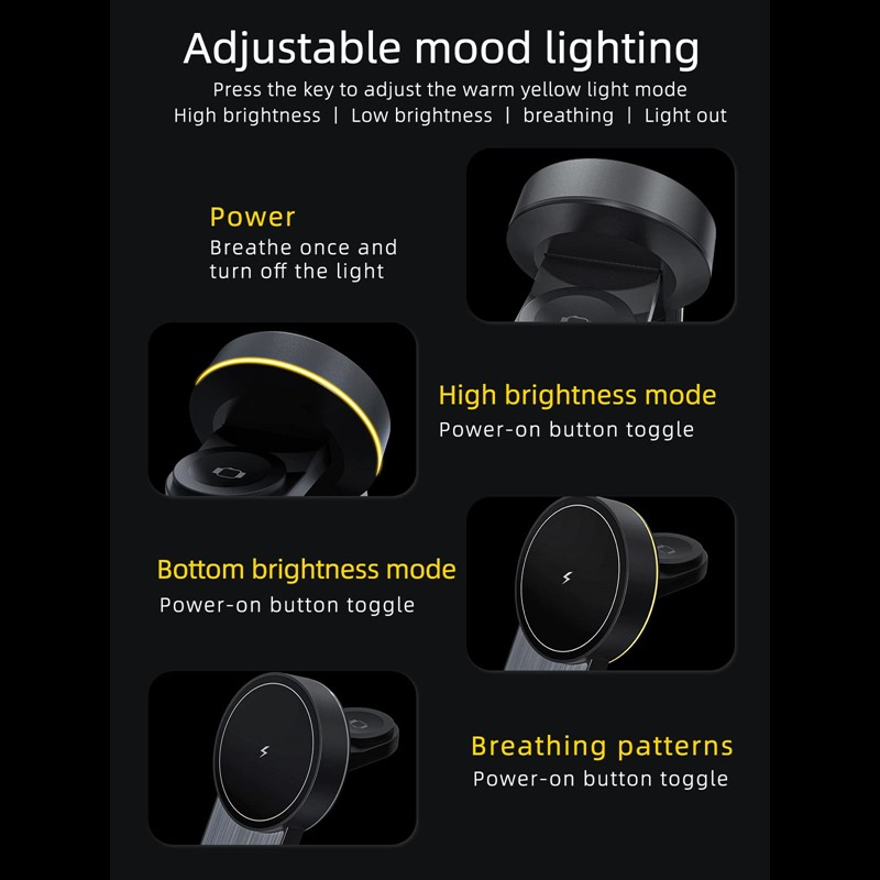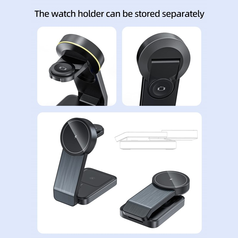 MTech MagTri 3-in-1 Magnetic Wireless Charger for Smartphones, Wireless Earbuds, and Smartwatches