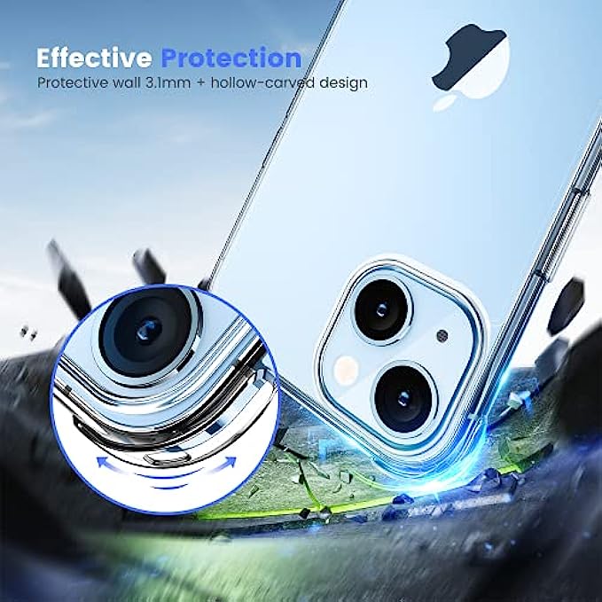 • Transparent and not-yellowing cover : Crystal Clear case for iphone 13 Using high-definition tpu and pc material, which effectively resist stains and sweat, not easy to get greasy and yellow over time,perfectly shows the original color of your phone.
