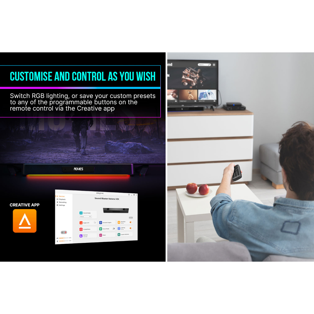 Sound Blaster Katana V2X - 5.1 Multi-Channel Gaming Soundbar with Compact Subwoofer, 180W Peak Power, ft Tri-Amplified 5