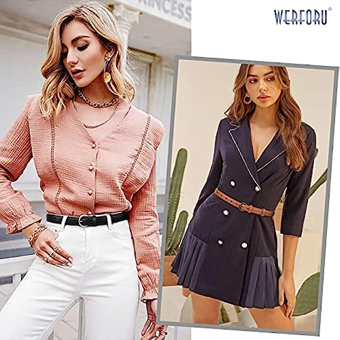 WERFORU 2 Pack Women Leather Belt Waist Skinny Dress Belts Solid Pin Buckle Belt for Jeans Pants