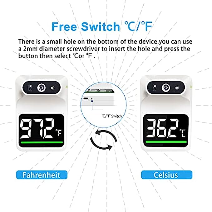 • Fever Alarm : When ≥ 37. 5℃ (99.5℉) is detected, the color indicator will switch from green to red and the alarm will give 10 short beeps to draw attention.