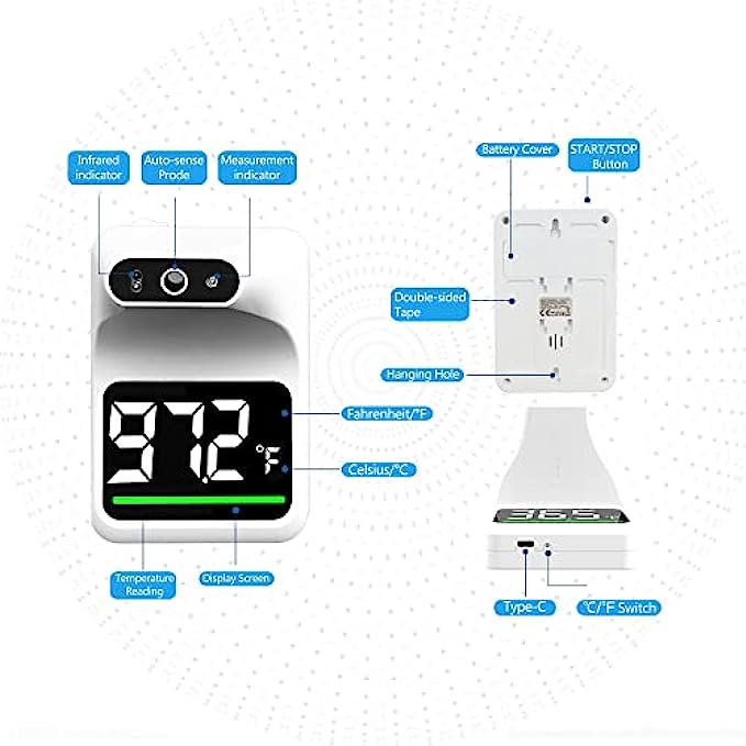 • Durable & Sustainable :The infrared thermometer is designed for continuous and long-term use. It powered by Type C USB cable and needs to be kept plugged in. Or by 18650 lithium battery 2000mAh(not included). The battery is not included in the package for transportation safety.