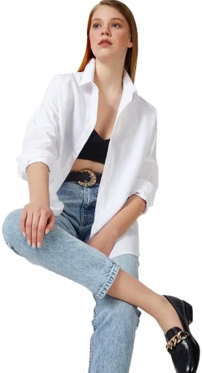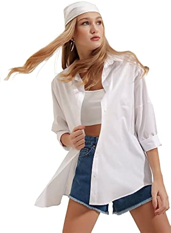 70% Cotton, 30% Polyester Imported Button closure Machine Wash We recommend you to buy your normal size. You will love these long sleeve stylish button down shirts. Loose fit design, oversized look, easy to roll up sleeves. Plus sizes are available solid color tops and blouses, here is the colors of the button down shirts we offer: black, white, purple, pink, brown (chocolate), beige-cream, army green, dark green, orange, dark lilac, indigo blue You can match these blouses and tops for women with any color and outfit you want. The shirts have an elegant look. They can be used as boyfriend button up shirts.