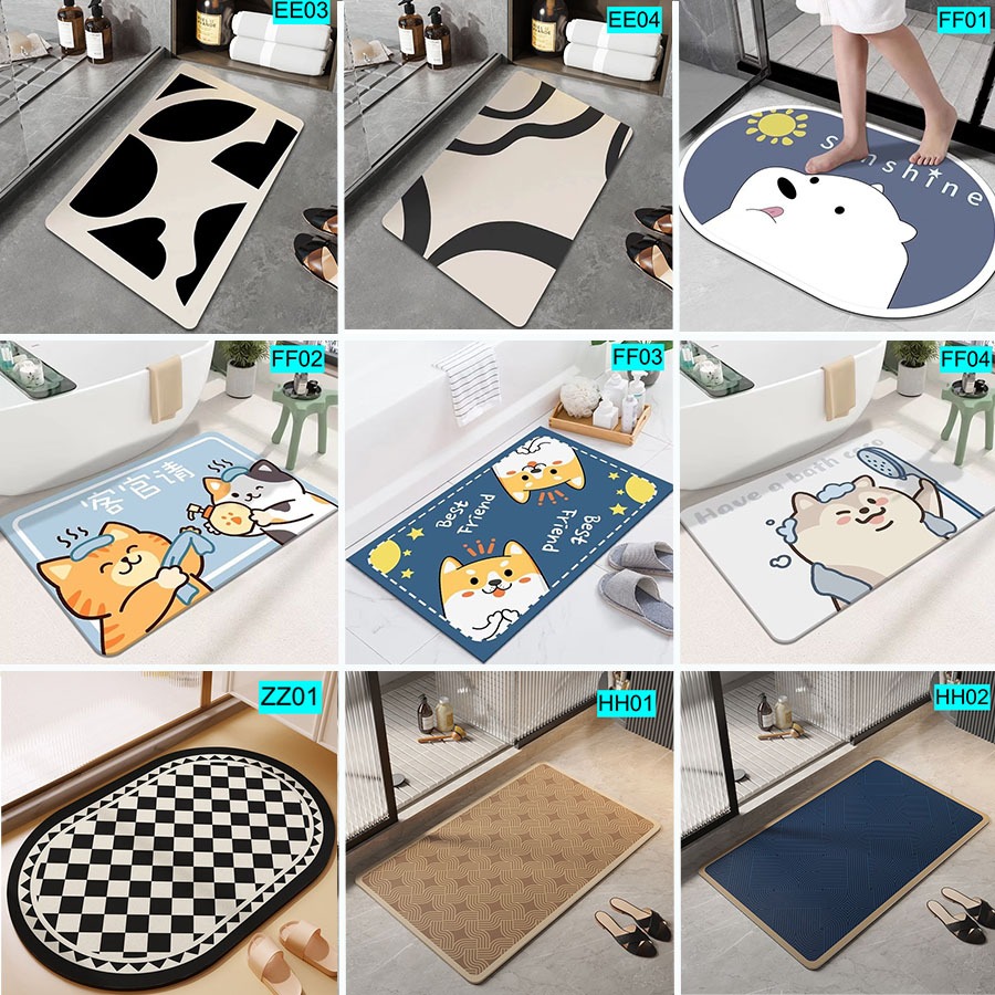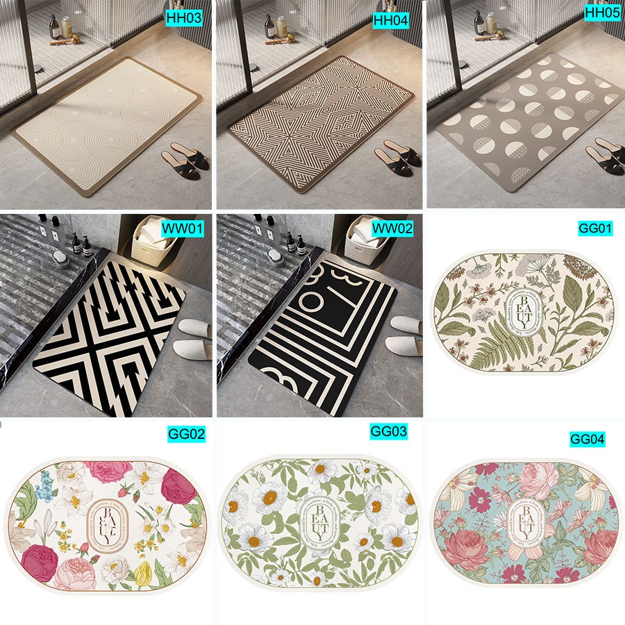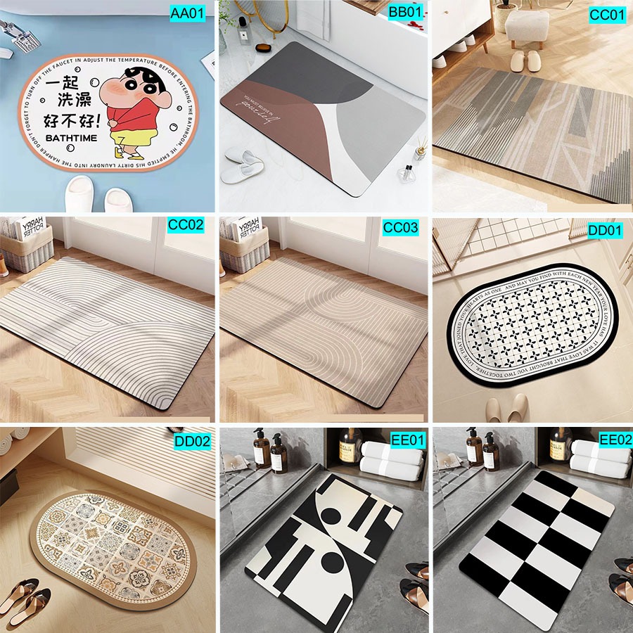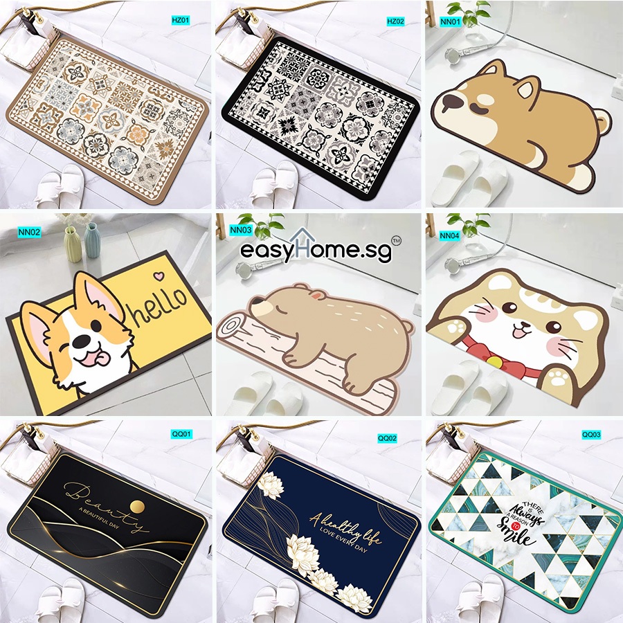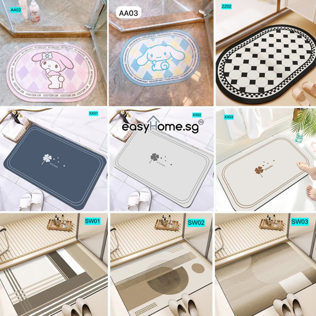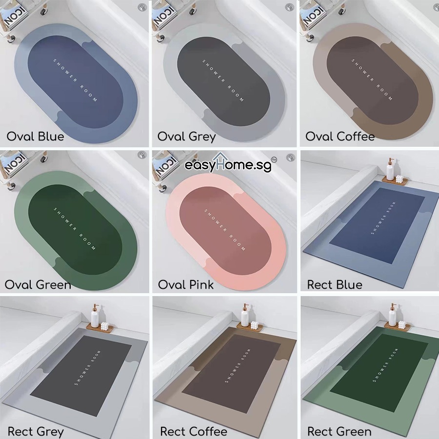Easyhome.sg Shower Room Mat Diatomite Mud Floor Mat Absorbent Quick Dry Kitchen Mat Non-Slip Bathroom Carpet Rug